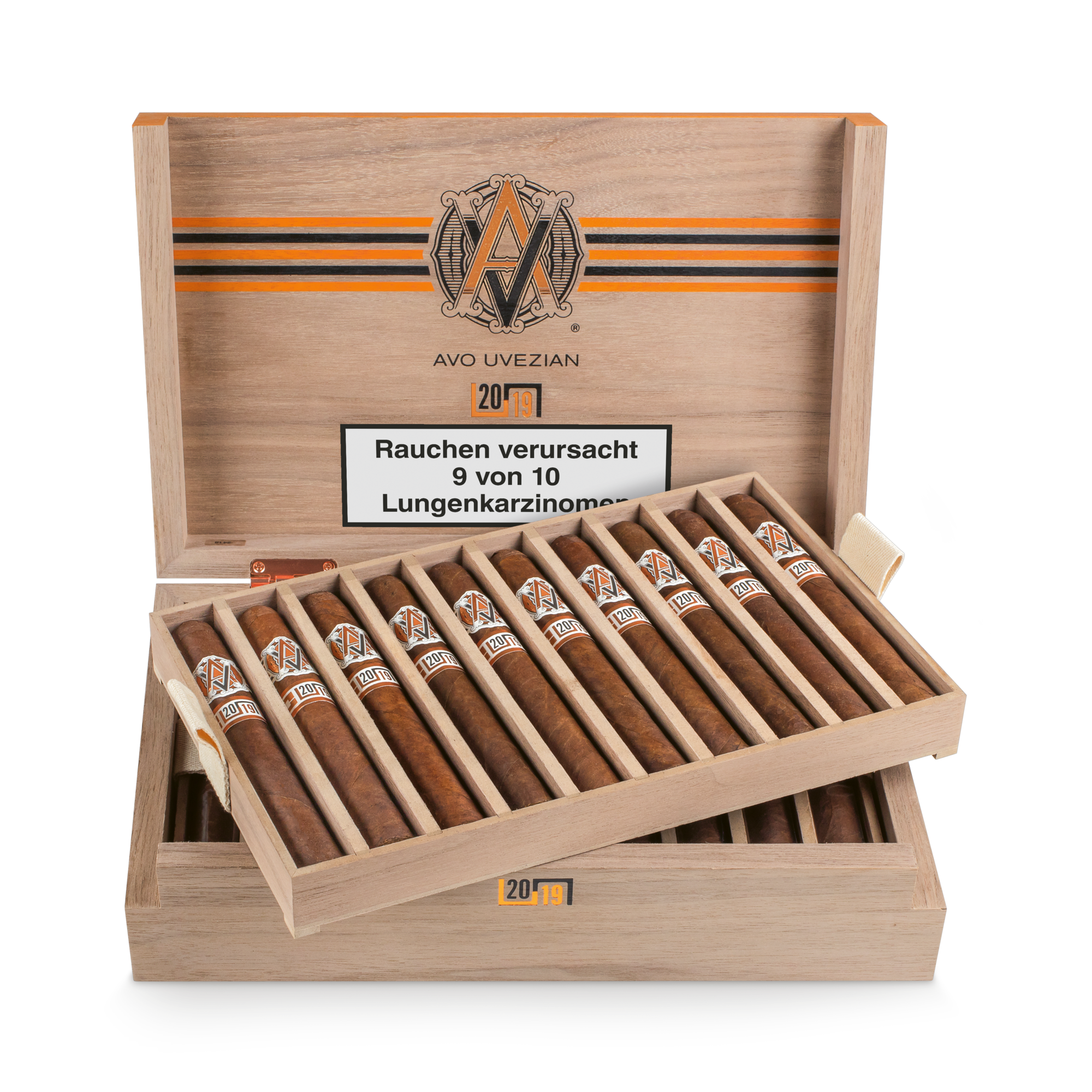 Die elegante Holzkiste der AVO Improvisation Series Limited Edition eignet sich besonders gut als authentisches Sammlerstück. Durch das herausnehmbare Fach der Kiste kann diese ebenso als Reisehumidor verwendet werden und kommt somit all jenen zu Gute, die auch unterwegs nicht auf den Zigarrengenuss verzichten möchten. Die Verpackung der AVO Improvisation Limited Edition 2019 ist von der Wickelform (Zigarrenpresse) der Box-Pressed-Zigarren inspiriert. Sie wird verwendet, um die Zigarren während des Rollvorgangs zu formen. Das zweite Band der Zigarre ist ebenso von der Wickelform inspiriert und ziert den Jahrgang der Edition "2019", welches in das Formmuster der Zigarrenpresse eingearbeitet ist.