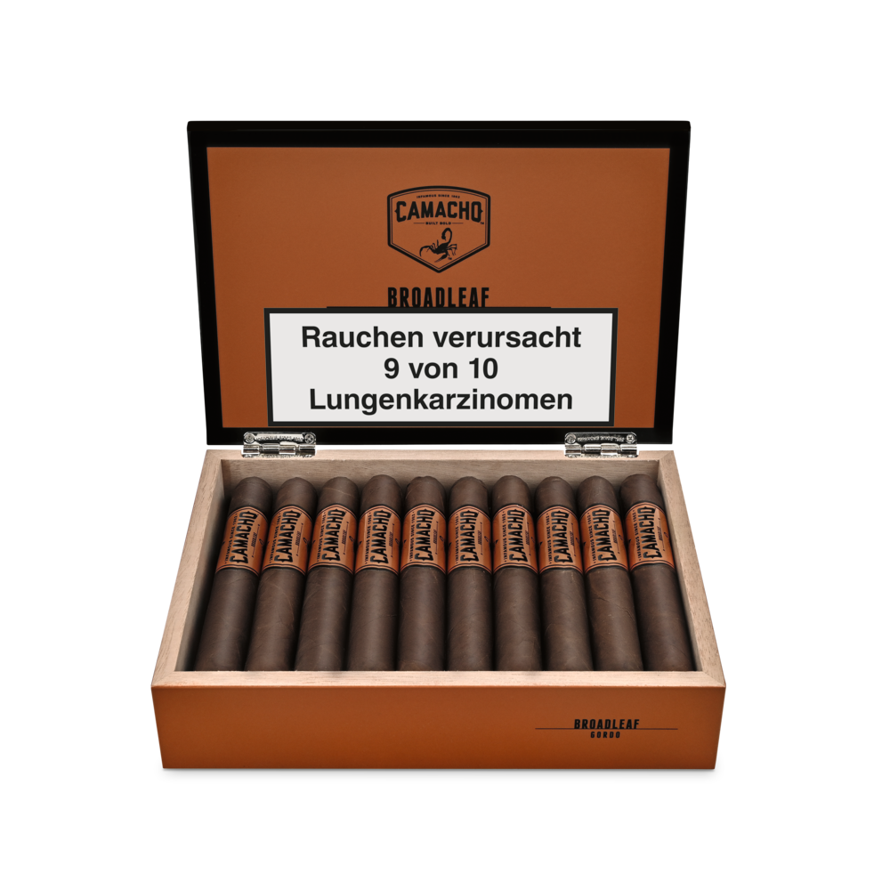 Camacho Cigars ist stolz darauf, die Camacho Broadleaf Serie im Gordo-Format vorzustellen - eine Serie, die Abenteurer und Feinschmecker gleichermassen begeistern wird. Das unverkennbare Merkmal dieser Linie ist das grossformatige honduranische Broadleaf-Deckblatt, das für hervorragenden Geschmack und höchste Qualität steht. Diese mittelstarke Zigarre im kräftigen Gordo-Format bietet ein wahres Feuerwerk an Geschmackserlebnissen. Ein vielseitiger Tabakblend aus Honduras und der Dominikanischen Republik, kombiniert mit dem charakteristischen Broadleaf-Deckblatt, katapultiert die Tabakkomplexität auf ein vollkommen neues Level. Tauche ein in das aufregende Abenteuer der Camacho Broadleaf Gordo.