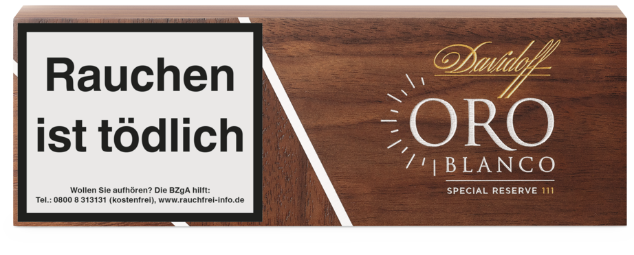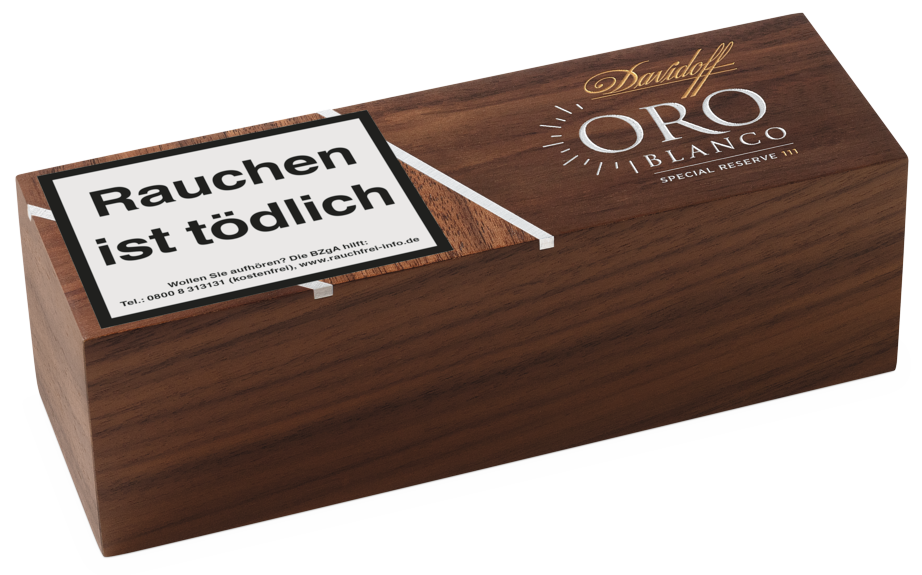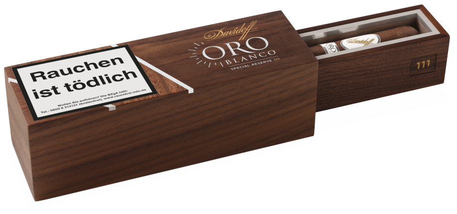 Um Aficionados ein noch nie dagewesenes Ultra-Premium-Produkt zu präsentieren, das ihre Zeit schöner und luxuriöser ausfüllt als jede Zigarre zuvor, haben die Davidoff Master Blender ihre Schatzkammern mit den ältesten und wertvollsten exklusiven Vintage-Tabaken geöffnet, und die Oro Blanco Special Reserve 111 Years kreiert. Der Blend der dominikanischen Puro setzt sich aus gut gereiften Tabaken aus fünf verschiedenen Terroirs zusammen, die ein Gesamtalter von 111 Jahren aufweisen.