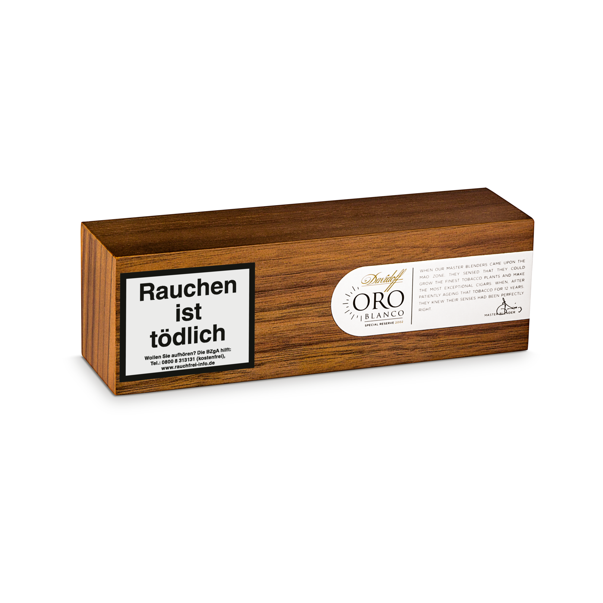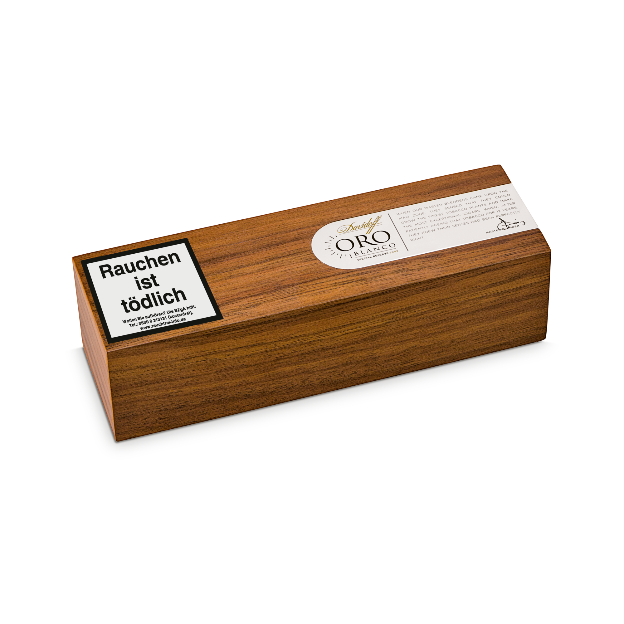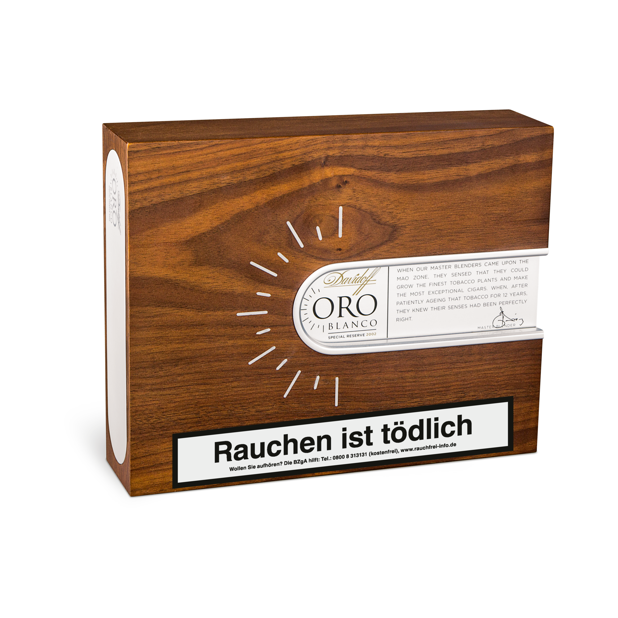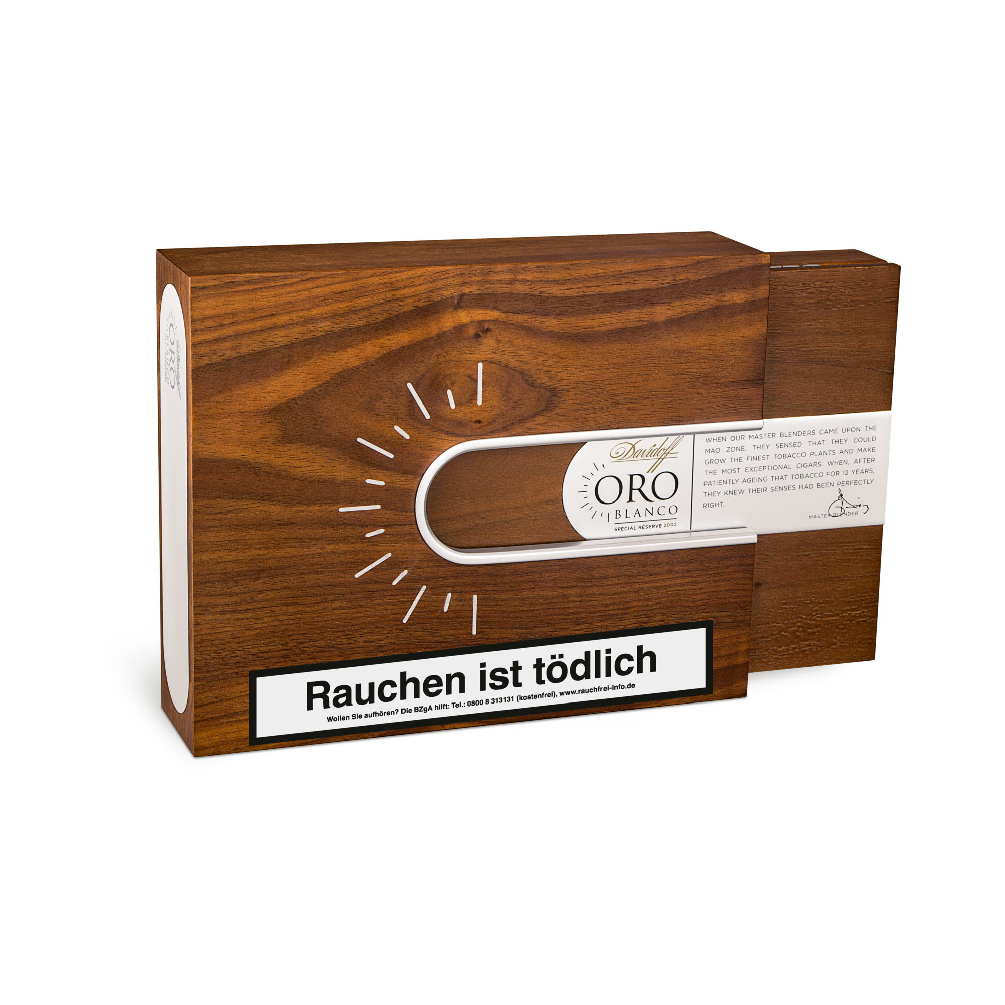 Diese Zigarre ist das ultimative Objekt für den passionierten Zigarrensammler. Es stellt sich nur die Frage: Wann ist ein Moment tatsächlich besonders genug für eine Oro Blanco? Als eine der kostbarsten Zigarren weltweit ist die Oro Blanco Toro die perfekte Begleiterin für denkwürdige Stunden und wegweisende Augenblicke. Ist die Zeit reif für eine Oro Blanco, prägt sie unvergessliche Momente mit dem feinsten Geschmack und Aroma, das Davidoff je geschaffen hat. Die Oro Blanco ist einzigartig. Die Tabake werden ausschließlich für Oro Blanco verwendet. Keine andere Zigarre wird jemals aus demselben Tabak bestehen. Deshalb ist der Genuss einer Oro Blanco für Aficionados ein einmaliges und unvergleichliches Erlebnis.
