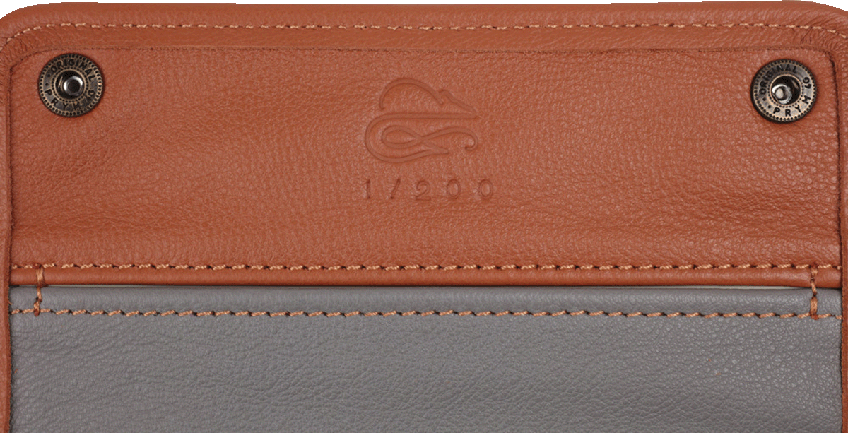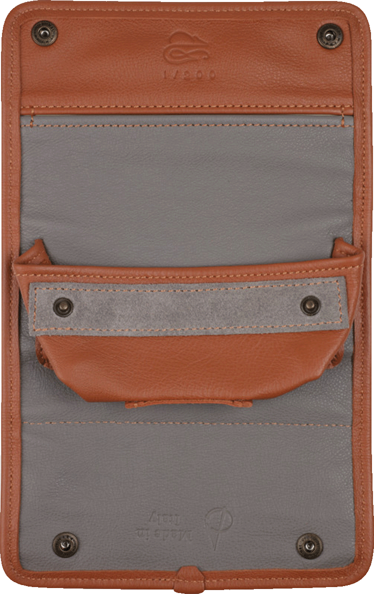 hervorragendes Geschenk für jeden Pfeifen-Aficionado. Handgefertigt in Italien aus italienischem Rindsnappa- und Wildleder in einer Kombination aus Grau- und Rotbrauntönen, von einem Lederhandwerker mit einer Passion für Tabakpfeifen.