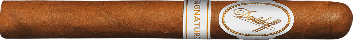 Die Signature-Linie passt perfekt zu eleganten Getränken wie Champagner, bei denen sowohl die Zigarre als auch das Getränk Hand in Hand gehen. Selbst zu einem torfigen oder rauchigen Whisky passt die Davidoff Signature gut, ohne zu dominant zu sein.