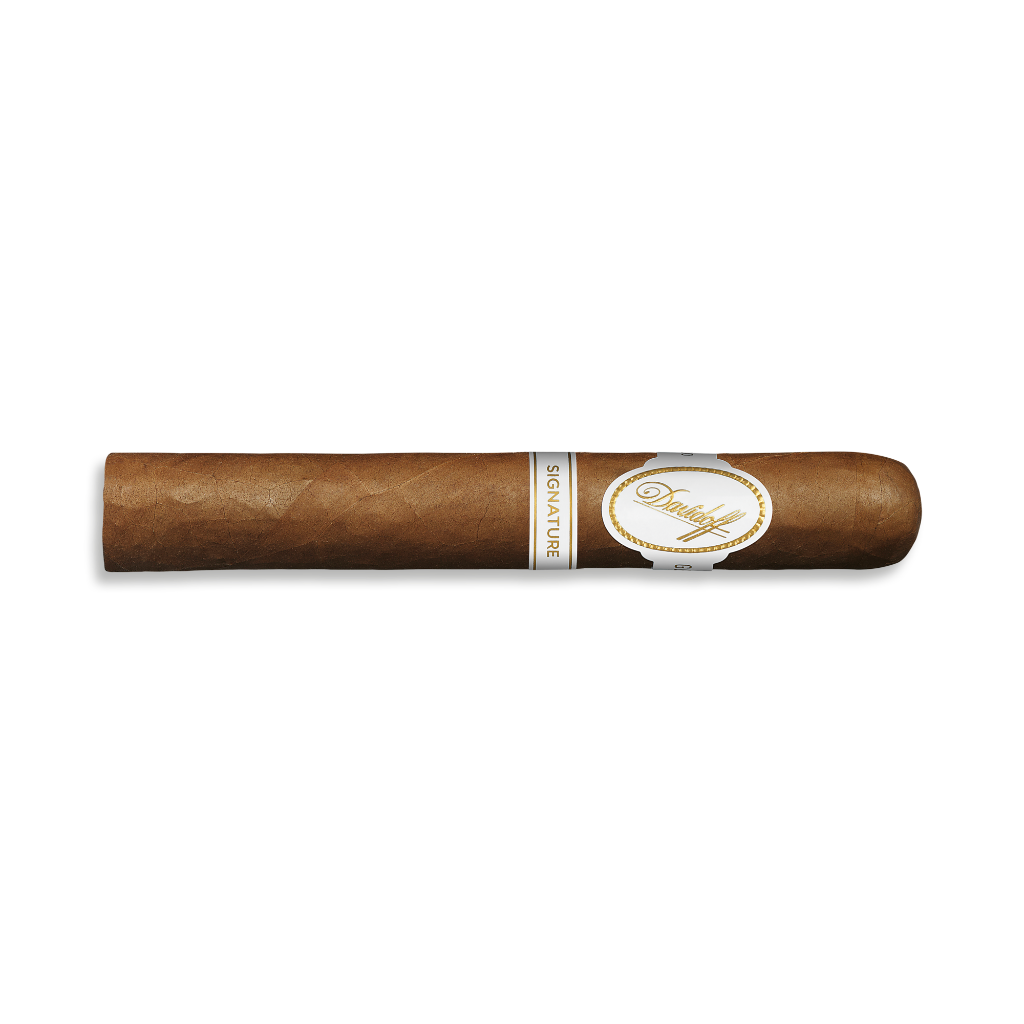 Eine komplexe Zigarre, die cremige und süße Noten zum Vorschein kommen lässt. Die Signature-Linie passt perfekt zu eleganten Getränken wie Champagner, bei denen sowohl die Zigarre als auch das Getränk Hand in Hand gehen. Selbst zu einem torfigen oder rauchigen Whisky passt die Davidoff Signature gut, ohne zu dominant zu sein.