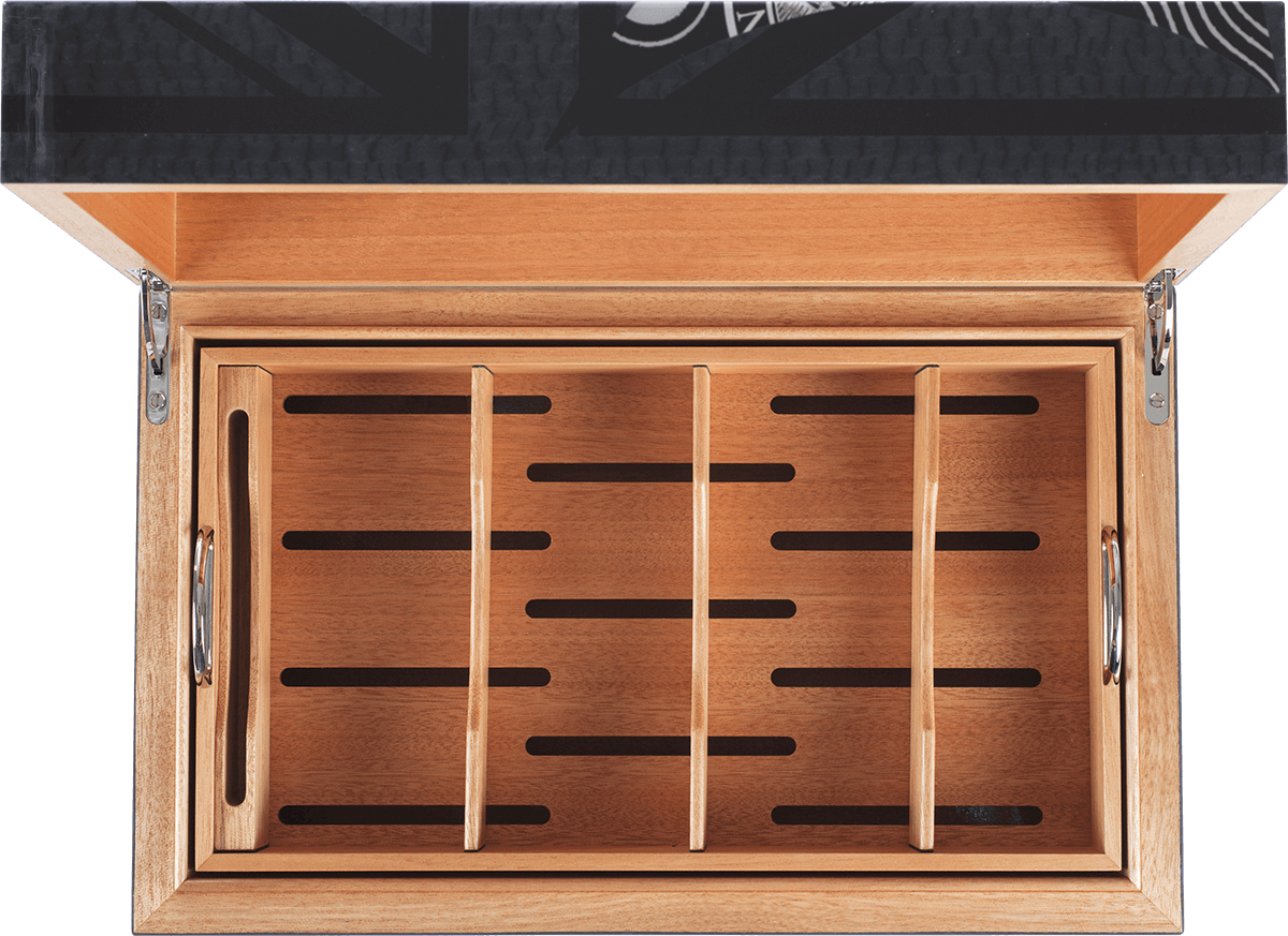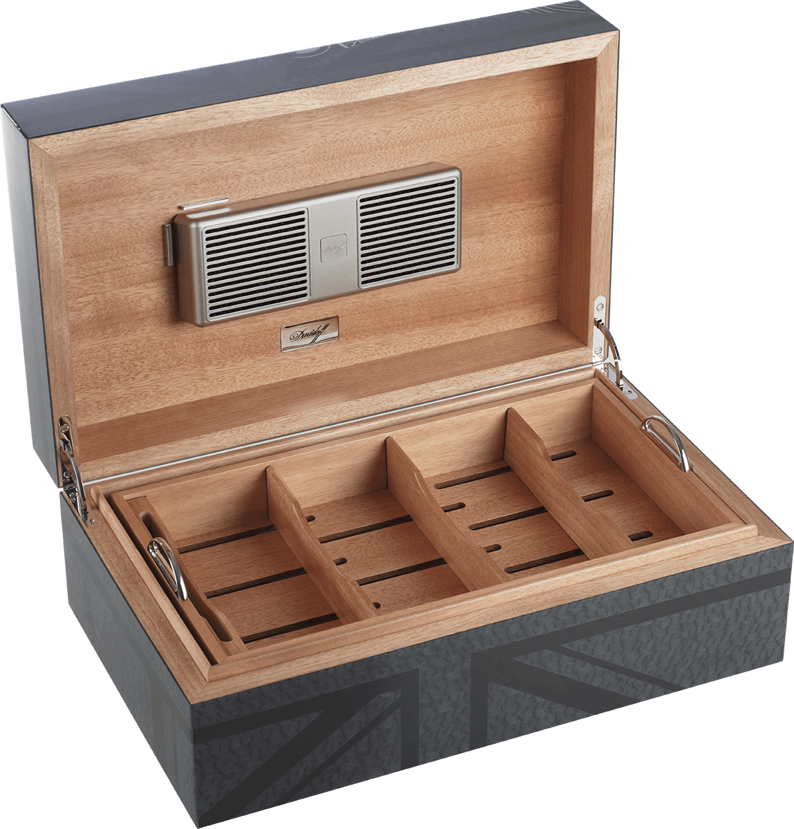 Dieser Humidor ist für diejenigen mit einem größeren Sortiment an Zigarren gedacht und verfügt über ein herausnehmbares Tablett und Trennwände zum Sortieren und Ordnen von Zigarren. Der Humidor bietet Platz für 70 bis 80 Zigarren. Ausgestattet mit einem selbst regulierenden Davidoff Slim-Luftbefeuchter, der eine stabile Befeuchtung zwischen 70 und 72% garantiert.