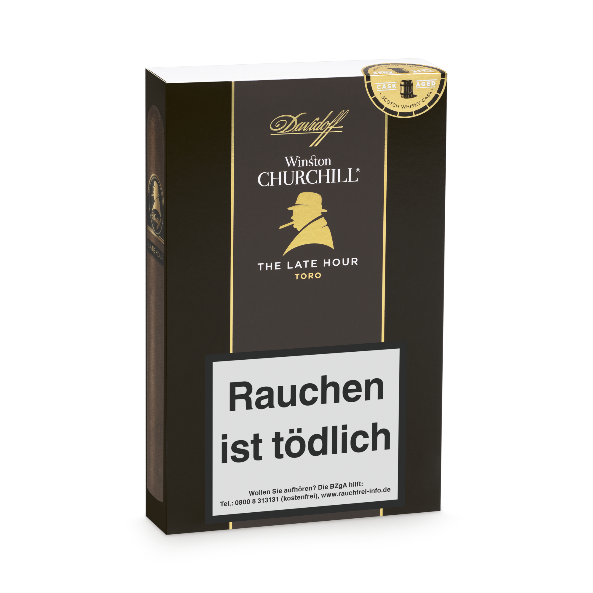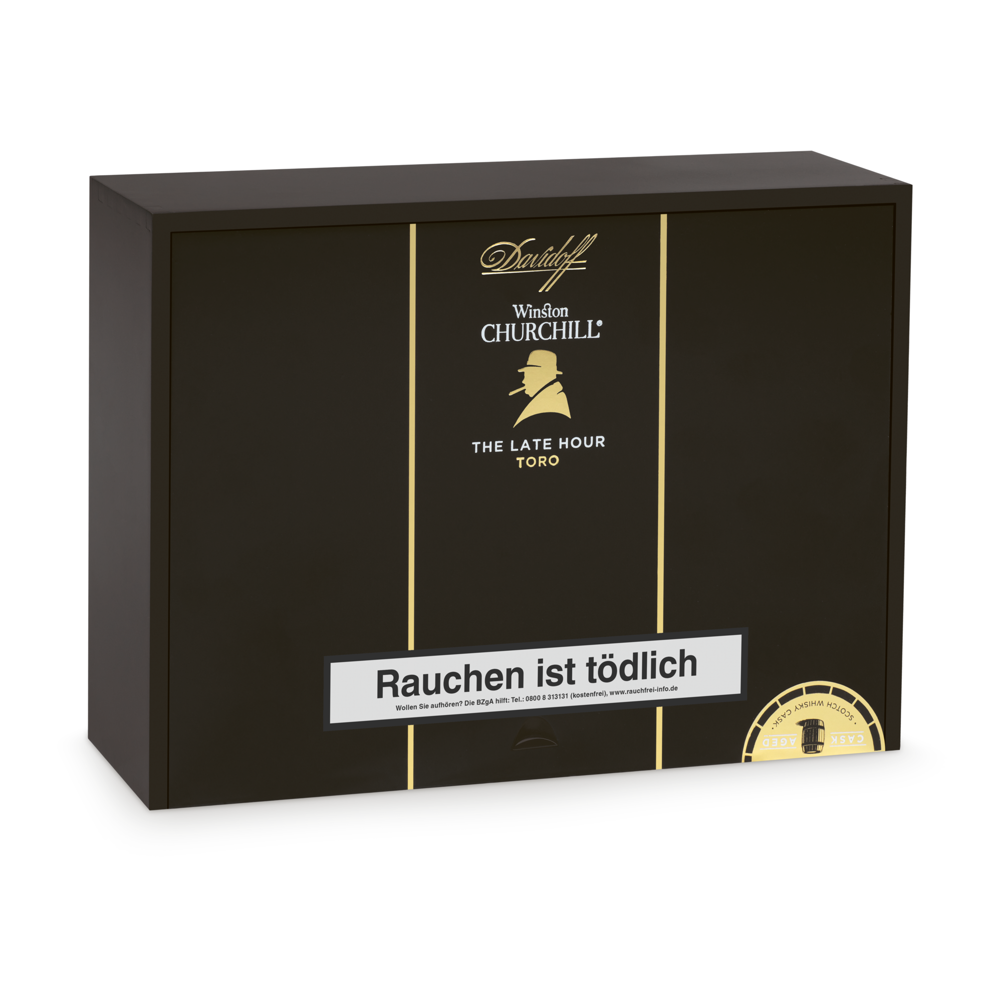 Wenn das Ende des Abends der Beginn von etwas Neuem ist. Und die Nacht von interessanten Gedanken und Diskussionen begleitet wird, ist dies der Moment für die - The Late Hour. Die Zigarre selbst sollte Gegenstand von Gesprächen sein, denn sie hat ihre eigene, einzigartige Geschichte. Ihr Tabak ist in Fässern von edelstem Scotch Single Malt Whisky gereift. Dies verleiht der Zigarre eine einzigartige Komplexität, Tiefe und ausgesprochen reiche Aromen, welche gleichzeitig Ihren Gaumen und Ihre Gespräche stimulieren werden. Die beiden Einlagetabake aus Nicaragua, die in den mineralstoffreichen Vulkanböden von Condega und Estelí angebaut werden, verleihen der Zigarre Würze und Charakter. Insbesondere der Condega Visus aus Nicaragua der in original Scotch Single Malt Whiskyfässern reift, geben der Zigarre eine mysteriöse Süße und geschmackliche Tiefe. Die beiden verschiedenen Visus Einlagetabake aus der Dominikanischen Republik und das dunkle mexikanische Umblatt, erzeugen zusammen die Komplexität dieser vollmundigen Mischung. Ausgeprägte Geschmacksrichtungen und Aromen verwöhnen den Gaumen mit wechselnden Noten von schwarzem Pfeffer, dunklem Kaffee, Süße, altem Leder, Holz und Würze. Um die Dunkelheit der Nacht wider zu spiegeln, in welcher Sir Winston am kreativsten war, hat Davidoff ein glänzendes und öliges Deckblatt aus Ecuador in einem satten, dunklen Schokoladenton ausgewählt.