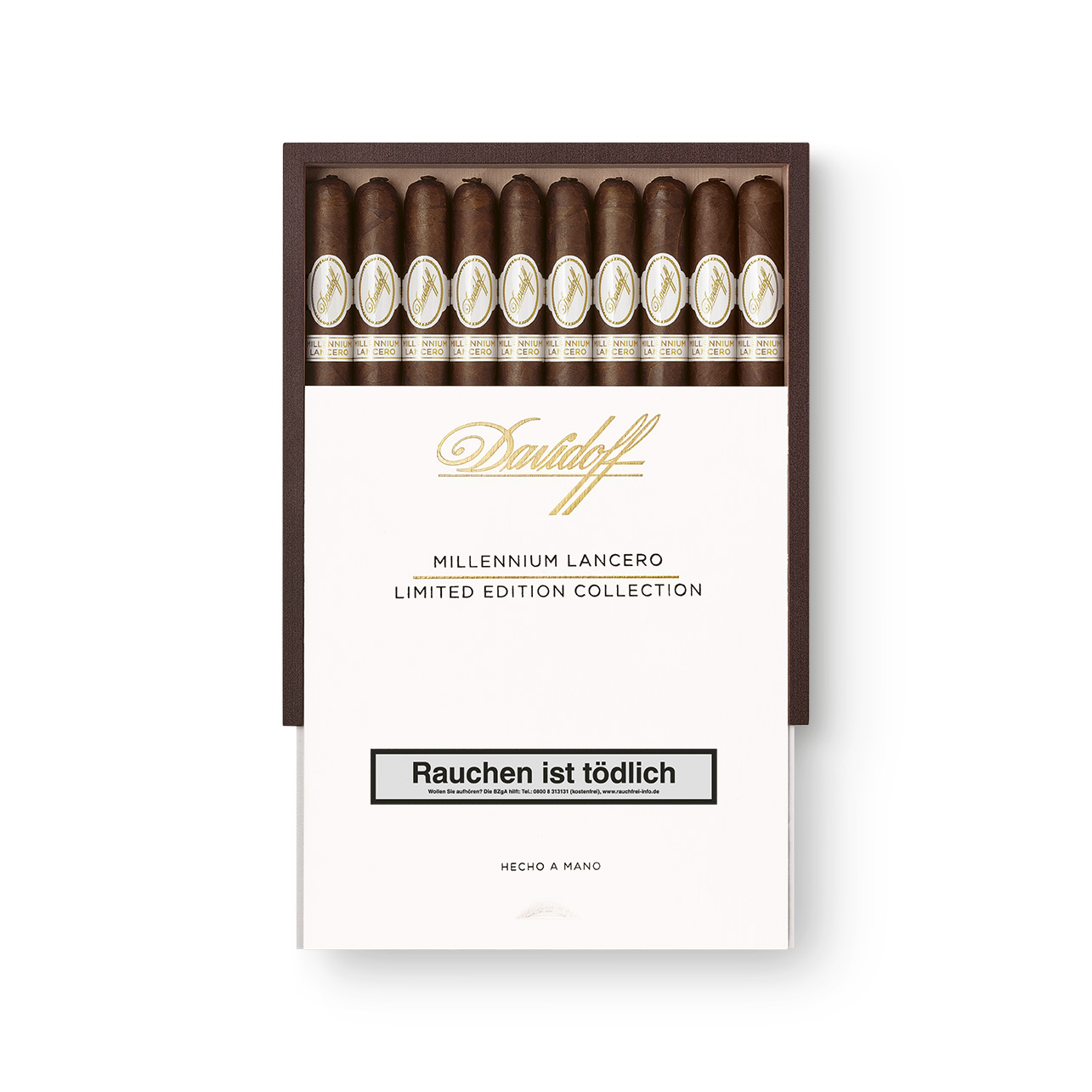 Die Millennium Lancero Limited Edition Collection ist die zweite Veröffentlichung aus einer Serie von 4 exklusiven, limitierten Editionen der Davidoff White Band Collection und ist somit das perfekte Sammlerstück oder Geschenk für jeden Aficionado. Anhänger des Millennium-Blends dürfen sich besonders über das legendäre 151-Deckblatt des Blends freuen, dessen ausgeprägte Noten von Schokolade und geröstetem Kaffee im Lancero-Format besonders gut zur Geltung kommen. Das schmale Ringmass und die grosszügige Länge der Zigarre, vollendet mit einer ikonischen Pigtail-Kappe, stehen für makellose Rollkunst und intensivieren die typischen Millennium-Aromen leicht. Auf 14 600 Kisten weltweit begrenzt.