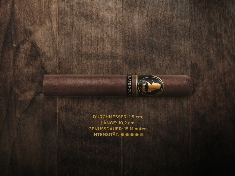 Als Spiegel der Dunkelheit, in der Sir Winston höchste Kreativität entfaltete, wählte Davidoff für The Late Hour ein glänzendes, öliges Ecuador-Deckblatt in wunderschönem Schokoladenbraun. Die Aromen dieser exquisiten Robusto reichen von schwarzem Pfeffer, starkem Kaffee und Süße bis hin zu feinen Ledernoten, Holz und Gewürzen.
