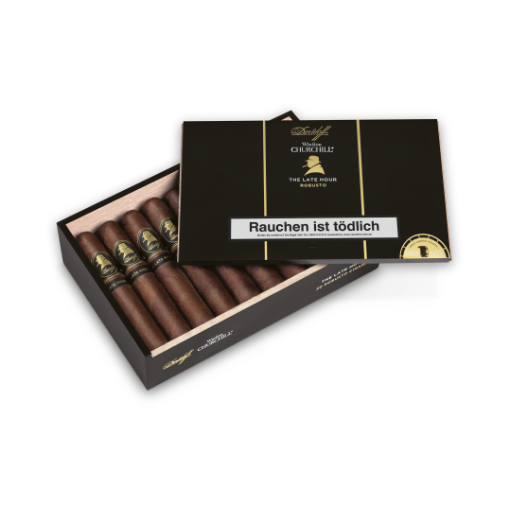 Sir Winston Churchill, der seine kreativsten Ideen zu später Stunde (late hour) bei einem Glas Whisky und einer Zigarre hatte, ist diese Zigarrenlinie von Davidoff gewidmet. Die Winston Churchill „The Late Hour“ ist die erste Davidoff-Zigarre, deren Tabak in Scotch Single Malt Whisky Fässern gereift wurde. Der verlängerte Reifungsprozess (6 Monate) im Fass gibt der Zigarre süße und intensive Geschmacksnoten und verleiht ihr ein dezentes Whiskyaroma.