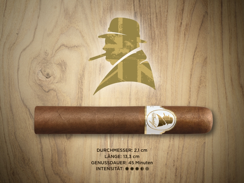 Sir Winston Leonard Spencer Churchill war Aristokrat und wurde in die Familie der Herzöge von Marlborough geboren. Im Laufe der Zeit entwickelte er einen Geschmack für die erlesenen Dinge des Lebens, darunter auch Zigarren. Diese Zigarre hat ihre eigene vornehme Herkunft – Davidoff – und ist vom Format her genau der Lieblingszigarre von Sir Winston nachempfunden. Eine solche Zigarre genießen zu dürfen, ist ein Privileg, das nicht jedem zugänglich ist. Dessen war sich auch Sir Winston bewusst.