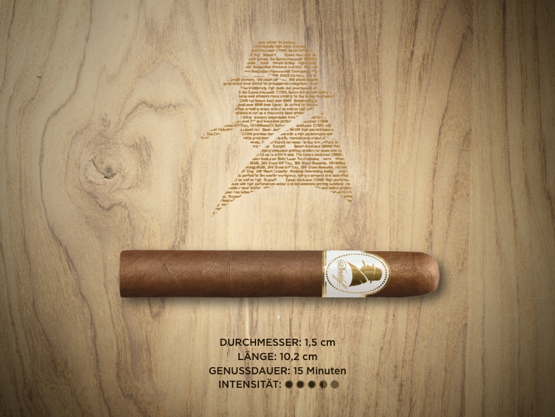 Sir Winston war ein Anekdotenerzähler und Liebhaber von geistreichen Bonmots. Als Geschichtenerzähler, der Worte kunstvoll ineinander verwob, waren seine Reden in privater Umgebung ebenso in den Bann ziehend wie in der Öffentlichkeit. Die Anekdoten vermischten sich wie der komplexe Geschmack dieser Petit Panetela, welcher leicht erdig mit einem Hauch von Gewürzen und Lakritze beginnt, dann jedoch vor dem Hintergrund blumiger und Kräuternoten allmählich eine samtige Konsistenz annimmt.